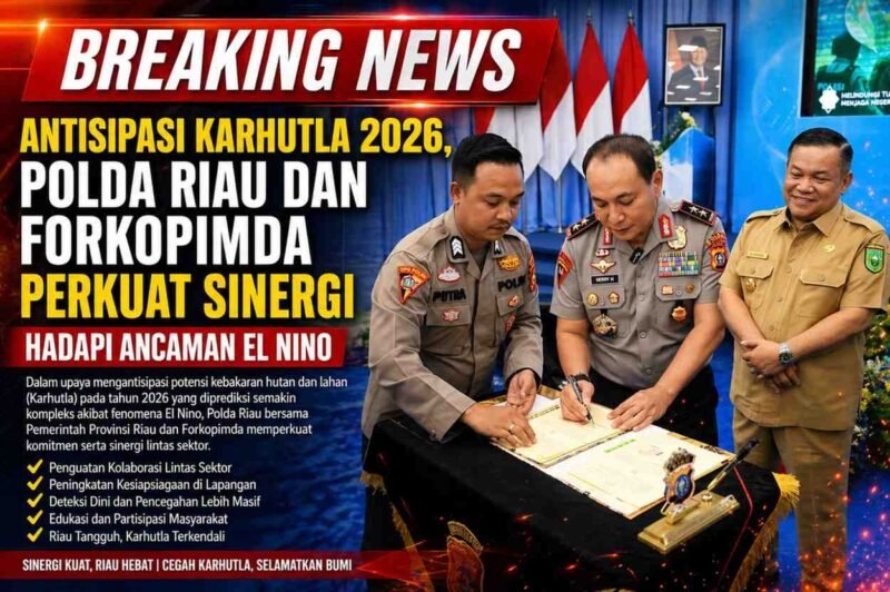 RIAUPARK.COM | PEKANBARU – Polda Riau bersama Forum Koordinasi Pimpinan Daerah (Forkopimda) menggelar Rapat Koordinasi Lintas Sektoral Kebakaran Hutan dan Lahan (Karhutla) Tahun 2026 di Aula Tribrata Mapolda Riau, Senin (27/4/2026), sebagai langkah strategis memperkuat kesiapsiagaan menghadapi ancaman musim kemarau panjang akibat fenomena El Nino.