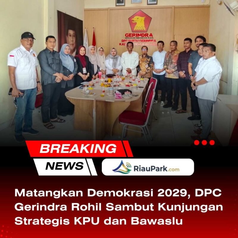RIAUPARK.COM | ROKAN HILIR – Dalam semangat memperkuat fondasi demokrasi menuju tahun politik 2029, Dewan Pimpinan Cabang (DPC) Partai Gerindra Kabupaten Rokan Hilir (Rohil) menerima kunjungan silaturahmi strategis dari Komisi Pemilihan Umum (KPU) dan Badan Pengawas Pemilu (Bawaslu) Rohil, Selasa (28/4/2026).