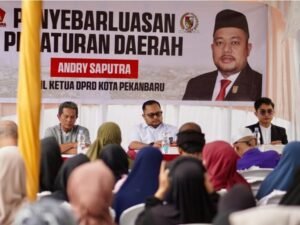 PEKANBARU – Kegiatan Penyebarluasan Perda yang dilaksanakan Wakil Ketua DPRD Kota Pekanbaru Andry Saputra pada Kamis (27/11/2025) mendapat sambutan hangat dari masyarakat di Jalan Pesisir Rumbai.